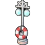 A streetlight that invokes harbor vibes. The life buoy stands out as the main highlight.