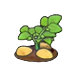 Large potatoes bulging out of the ground. Pull the stem to harvest themNote: Not registered in collection